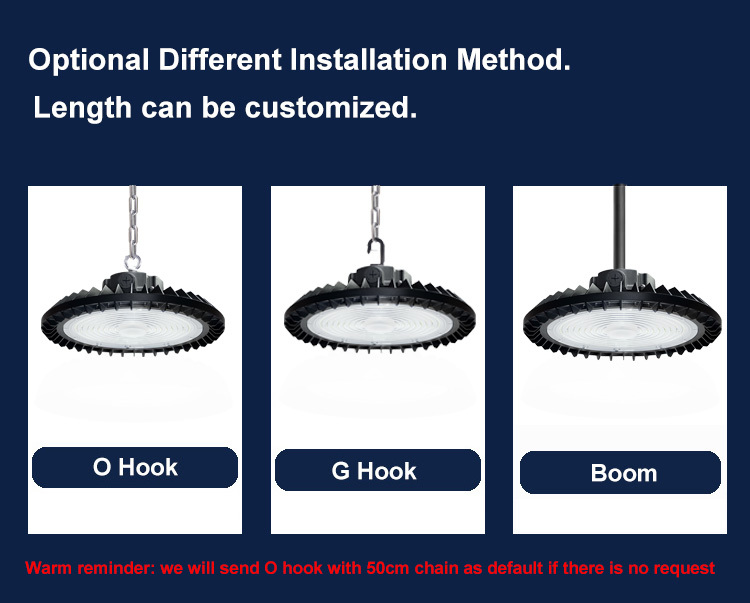 - UFO LED luz alta bahia usa super brilhante e alta lumen SMD 2835 LEDs para fazer alta eficiência de luz 110-120lm/W,Adota a mais avançada tecnologia de patch e design convexo para oferecer iluminação mais brilhante e maior gama de iluminação ajustável.