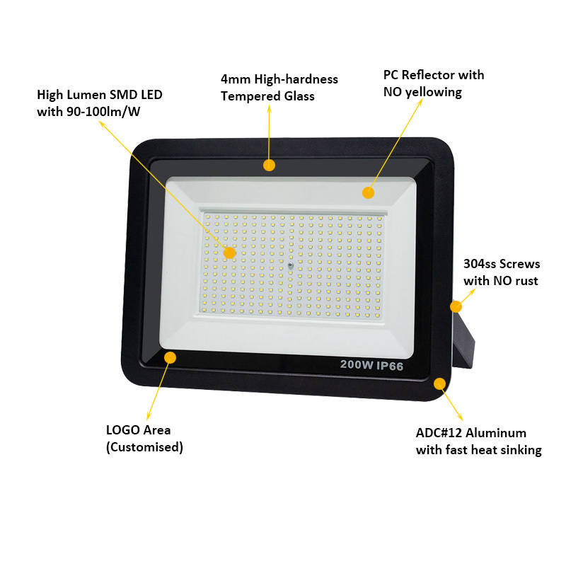 IP65 150w Luz de Inundação LED Alumínio à Água Exterior Vidro Temperado